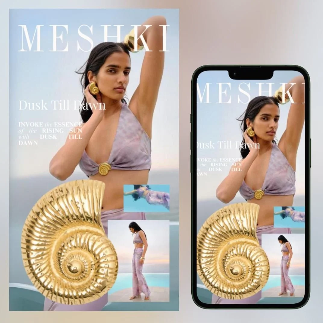 This series of campaign concepts for Meshki explores how fashion storytelling can be elevated through editorial-inspired layouts and interactive digital experiences. Each theme—ranging from Dusk Till Dawn to Archives—was designed to feel like a modern fashion magazine brought to life across Instagram and mobile platforms.